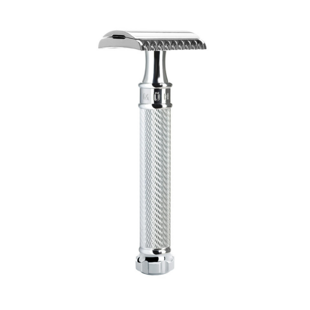 MUHLE RASOIO CLASSICO PROFESSIONALE R41 Rasoio a mano libera tradizionale R-41 *Lo stand in acciaio non è incluso I denti relativamente larghi e il posizionamento piatto della lama promettono una rasatura...