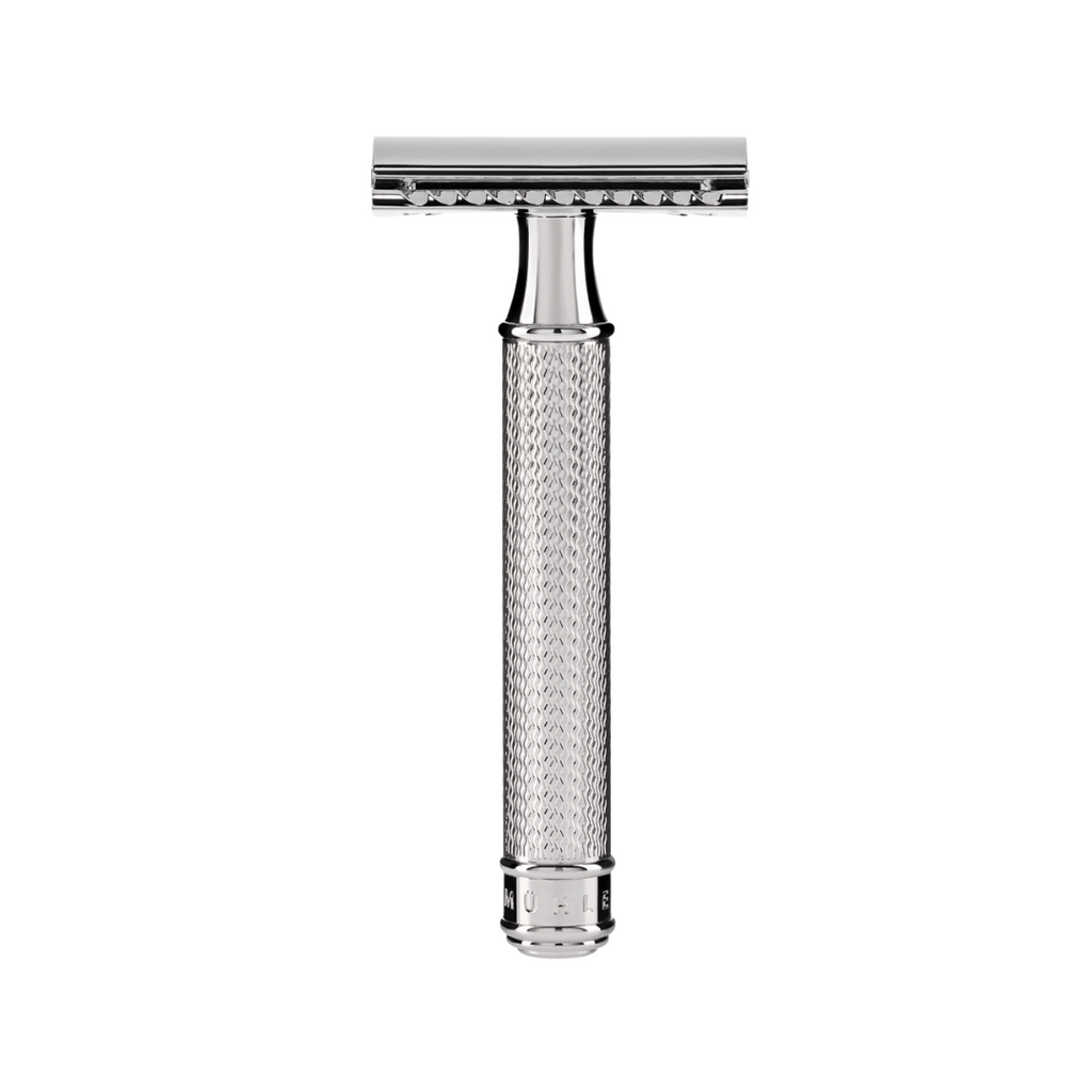 Per gli esperti e per chi vuole diventarlo: una mano extra ferma è necessaria quando si fa la rasatura a umido con un rasoio di sicurezza della serie TRADITIONAL. Ma con un po' di pratica, il rituale mattutino diventerà presto un piacere di cui non potrai più fare a meno, proprio perché ti richiede di fermarti e prenderti un po' di tempo. MÜHLE produce questo classico accessorio da barba con lame rimovibili in due versioni. Il rasoio di sicurezza con pettine aperto facilita una tecnica di rasatura particolarmente diretta per gli esperti più esigenti. La rasatura a pettine chiuso è un'esperienza più delicata, anche se il risultato è altrettanto preciso e accurato. Il più piacevole di tutti i rituali di cura è, ovviamente, un pennello da barba coordinato. Un prodotto classico realizzato in metallo cromato.